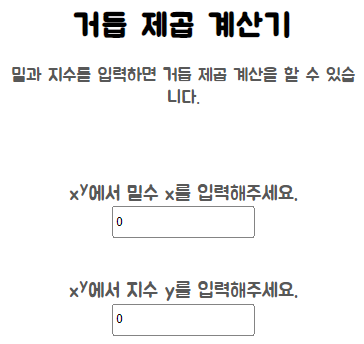 이 계산기는 제곱해야 할 밑수와 지수 수치를 입력하면 자동으로 결과를 계산해줍니다